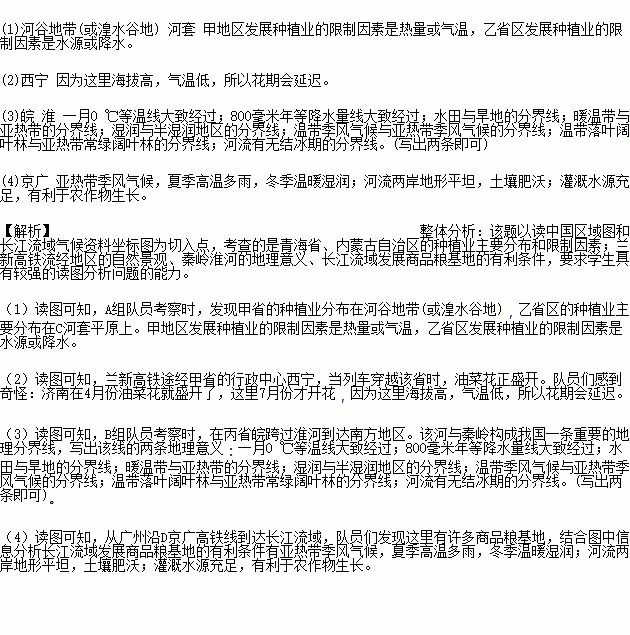 (1)A×é¶ÓÔ±¿¼²ìʱ£¬·¢ÏÖ¼×Ê¡µÄÖÖÖ²Òµ·Ö²¼ÔÚ___________________ÒÒÊ¡ÇøµÄÖÖÖ²ÒµÖ÷Òª·Ö²¼ÔÚC________ƽÔÉÏ¡£ÇëÎʼס¢ÒÒÁ½Ê¡Çø·¢Õ¹ÖÖÖ²ÒµµÄÏÞÖÆÒòËØ·Ö±ðÊÇʲô£¿