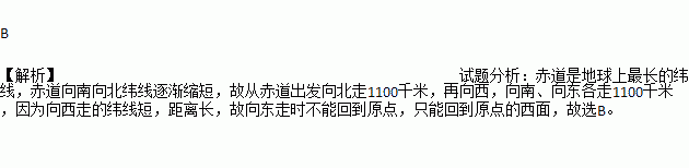 某人从赤道出发向北、再向西、转向南,又转向东各走了1 100千米,最后到达( )