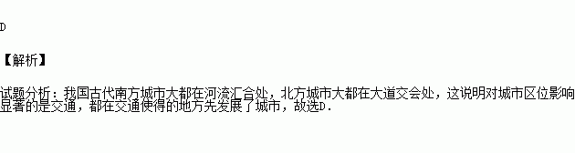 我国古代南方城市大都在河流汇合处,北方城市大都在大道交会处,这说明对城市区位影响显著的是( )