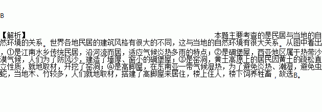 下列民居建筑中,能反映西亚自然地理环境特点的是( )