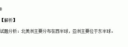 A.北美洲与亚洲都主要位于北半球