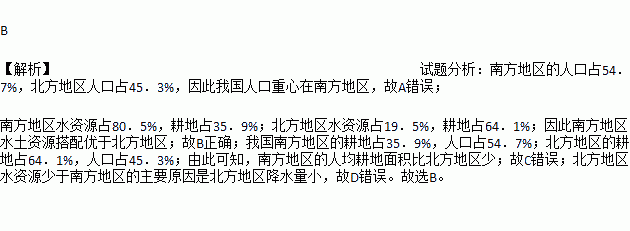 D. 北方地区水资源少于南方地区的主要原因是平原面积广大