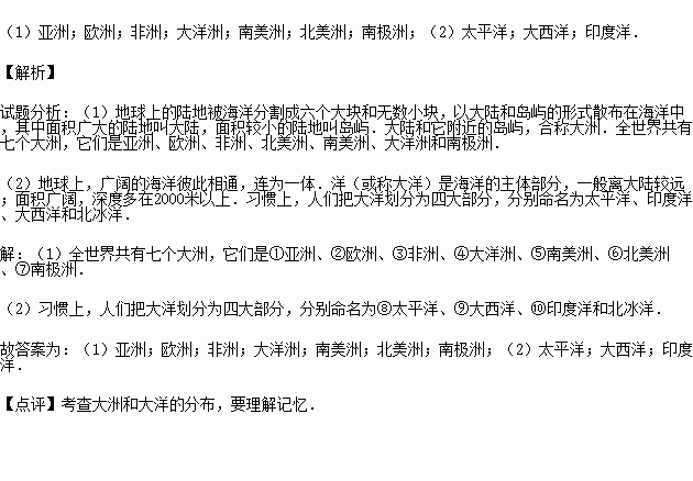 (1)在图上写出七大洲名称: