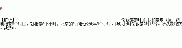 当我们今天上午10时15分进行地理月考时,伦敦(中时区)的小朋友可能正在( )
