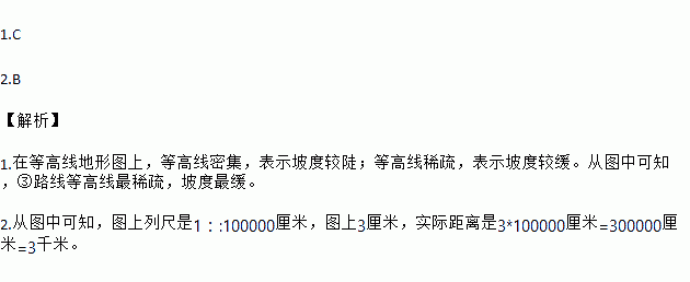 某中学地理兴趣小组在外出考察某山地时,准备了一幅等高线地形图(如下图),以便确定登山线路。
