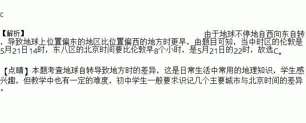 A. 5月21日6时 B. 5月21日20时 C. 5月21日22时 D. 5月22日16时