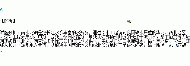 C. “南北北调”工程的西线方案是解决华北缺水的问题