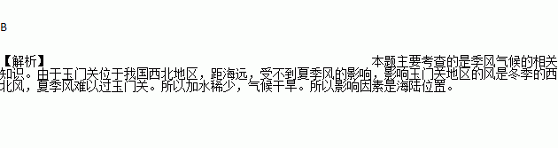 王之涣有诗曰:“羌笛何须怨杨柳,春风不度玉门关。”造成中纬度内陆地区干旱的主要因素是( )