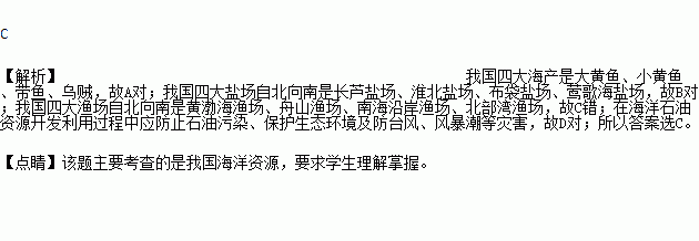 A. 我国四大海产是大黄鱼、小黄鱼、带鱼、乌贼