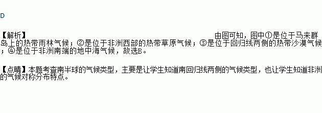 C. ③是热带雨林气候 D. ④是温带海洋性气候