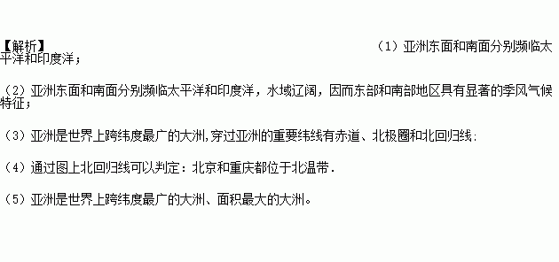 (2)亚洲背靠世界最大的大陆,面临世界最大的大洋,所以东部和南部具有显著的季风气候特征.(_______)