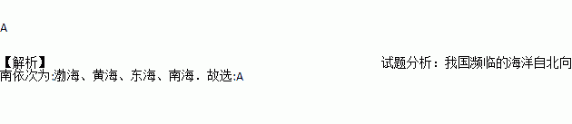 A. 渤海、黄海、东海和南海 B. 黄海、渤海、东海和南海