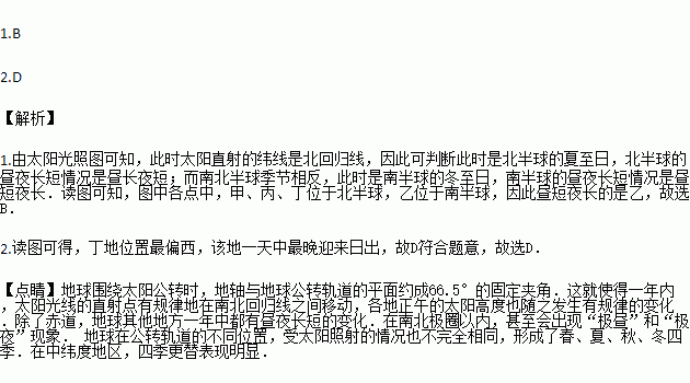 1.如图所示,下列地点昼短夜长的是( )