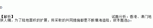 D 【解析】试题分析:香港、澳门地狭人稠,为了陆地面积的扩展,所采取的共同措施都是不断填海造陆,故本题选D。