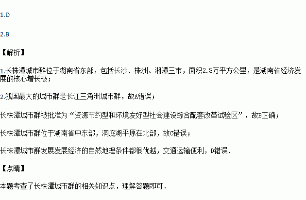 2015年4月,国务院批复同意《长江中游城市群发展规划》,这是以武汉城市圈、长株潭城市群、环鄱阳湖城市群为主体形成的特大城市群。结合“长江中游城市群”简略示意图,完成下面小题。