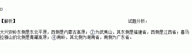 A. ①是内蒙古高原 B. ②山脉是雪峰山