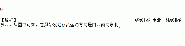 D 【解析】经线指向南北,纬线指向东西,从图中可知,卷风始发地M及运动方向是自西南向东北。