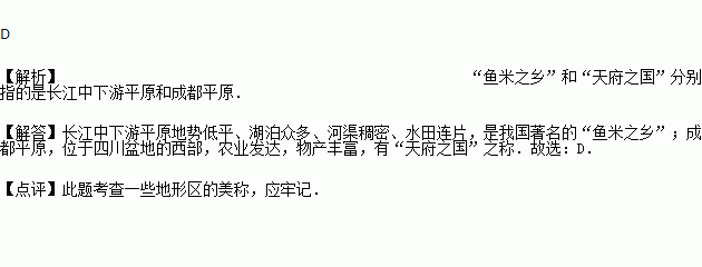 C. 四川盆地、东北平原 D. 长江中下游平原、成都平原
