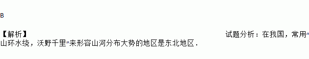 B 【解析】试题分析:在我国,常用“山环水绕,沃野千里”来形容山河分布大势的地区是东北地区.