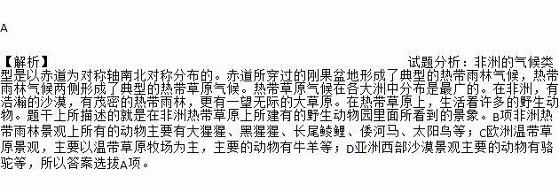 A ¡¾½âÎö¡¿ÊÔÌâ·ÖÎö£º·ÇÖÞµÄÆøºòÀàÐÍÊÇÒÔ³àµÀΪ¶Ô³ÆÖáÄϱ±¶Ô³Æ·Ö²¼µÄ¡£³àµÀËù´©¹ýµÄ¸Õ¹ûÅèµØÐγÉÁ˵äÐ͵ÄÈÈ´øÓêÁÖÆøºò£¬ÈÈ´øÓêÁÖÆøºòÁ½²àÐγÉÁ˵äÐ͵ÄÈÈ´ø²ÝÔÆøºò¡£ÈÈ´ø²ÝÔÆøºòÔÚ¸÷´óÖÞÖзֲ¼ÊÇ×î¹ãµÄ¡£ÔÚ·ÇÖÞ£¬ÓкÆå«µÄɳĮ£¬ÓÐïÃܵÄÈÈ´øÓêÁÖ£¬¸üÓÐÒ»ÍûÎ޼ʵĴó²ÝÔ¡£ÔÚÈÈ´ø²ÝÔÉÏ£¬Éú»î×ÅÐí¶àµÄÒ°Éú¶¯Îï¡£Ìâ¸ÉÉÏËùÃèÊöµÄ¾ÍÊÇÔÚ·ÇÖÞÈÈ´ø²ÝÔÉÏËù½¨ÓеÄÒ°Éú¶¯ÎïÔ°ÀïÃæËù¿´µ½µÄ¾°Ïó¡£BÏî·ÇÖÞÈÈ´øÓêÁÖ¾°¹ÛÉÏËùÓе͝ÎïÖ÷...