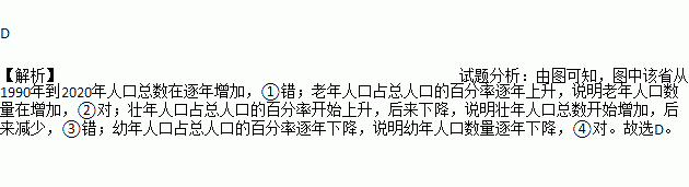 读我国某省(市)人口统计图,从1990年到2020年间人口数量的变化是( )