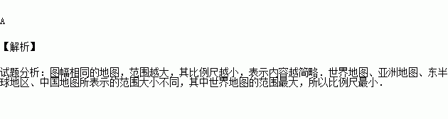 下面四幅地图的图幅面积相同,比例尺最小的是: