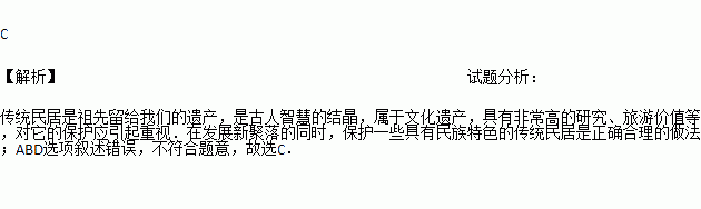 D. 传统民居代表特定时期的经济、文化等特点,一律保护