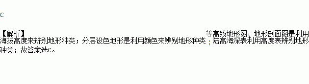 A. 等高线地形图 B. 地形剖面图 C. 分层设色地形 D. 陆高海深表