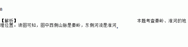 B 【解析】本题考查秦岭、淮河的地理位置。读图可知,图中西侧山脉是秦岭,东侧河流是淮河。