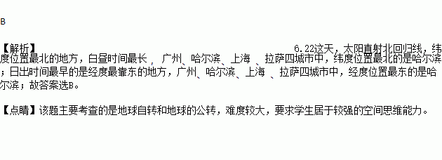 A. 广州 B. 哈尔滨 C. 上海 D. 拉萨
