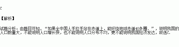 “如果全中国人手拉手站在赤道上,能环绕地球赤道40多圈.”这句话说明( )