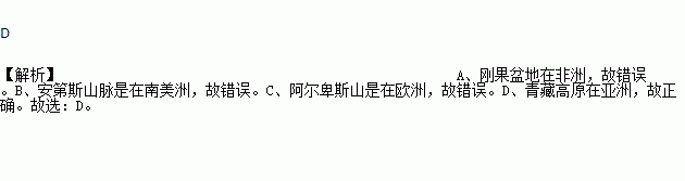 A. 刚果盆地——南美洲 B. 安第斯山脉——非洲