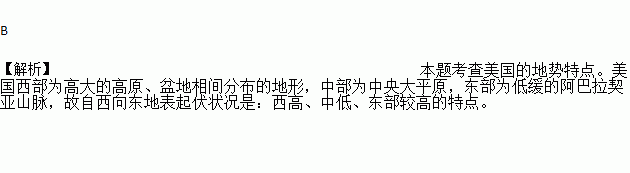 该图能正确反映美国自西向东地表起伏的是