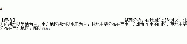 A. 旱地为主 B. 水田为主 C. 林地为主 D. 草地为主