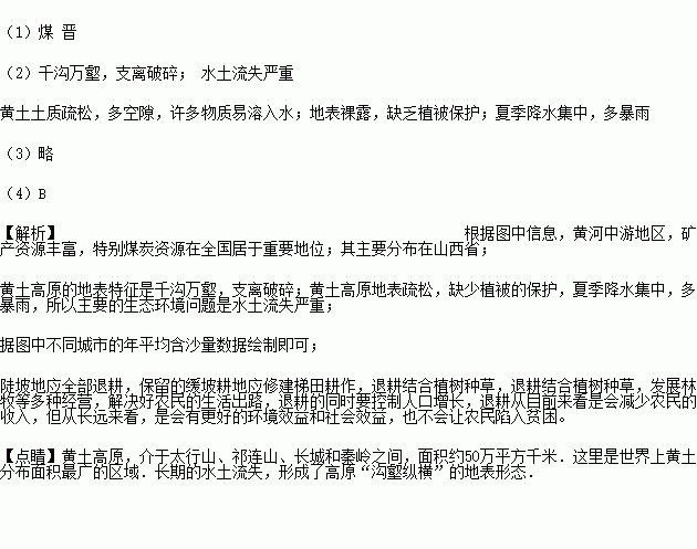 (1)根据图中信息,黄河中游最丰富的矿产资源是 ,其主要分布所在省的简称是 。