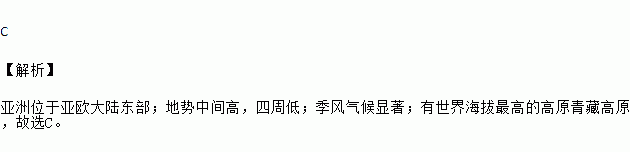 C. 季风气候显著 D. 有世界面积最大的高原