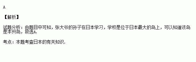 邻居张大爷的孙子在日本学习。一天,张大爷在与王林同学闲聊时问道:“我孙子说他的学校位于日本最大的一个岛上,这个岛叫什么名字啊?”王林正确的回答是