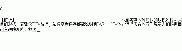 A. 月食的形状 B. 麦哲伦环球航行 C. “天圆地方”说 D. 站得高看得远