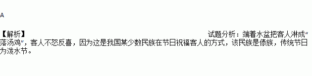 端着水 盆把客人淋成“落汤鸡”,客人不怒反而喜,因为这是我国某少数民族在节日祝福客人的方式,该民族是: