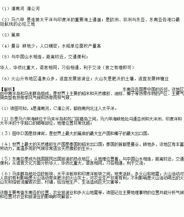 (6)马来群岛火山活动频繁,火山活动对当地居民生产、生活的影响巨大。除影响交通,带来财产损失,威胁生命安全外,火山活动也会给人类带来一定的好处,请举一例说明。