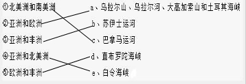 解答:解:①北美洲和南美洲的分界线是巴拿马运河;②亚洲和欧洲的分界线是乌拉尔山、乌拉尔河、大高加索山和土耳其海峡;③亚洲和非洲的分界线是苏伊士运河;④亚洲和北美洲的分界线是白令海峡; ⑤欧洲和非洲的分界线是直布罗陀海峡.根据题意.