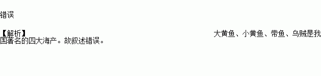 中国著名的四大海产是大黄鱼、带鱼、乌贼、墨鱼。( )