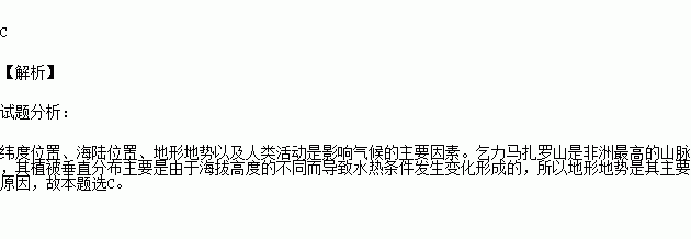 影响乞力马扎罗山植被垂直分布的主要原因: