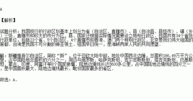 我国面积最大的省级行政区是( )
