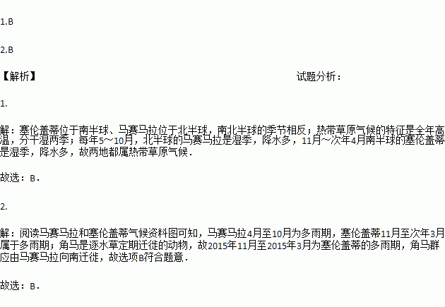 A. 由马赛马拉向北迁徙 B. 由马赛马拉向南迁徙