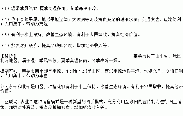 材料二 莱芜的“三辣一麻”分别是白皮蒜、生姜、鸡腿葱和大红袍花椒,三辣主要分布在西部的小平原地区,花椒主要分布在东部、北部和南部山区。