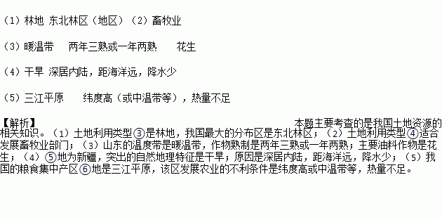 (5)我国的粮食集中产区⑥地是 ,该区发展农业的不利条件是 。