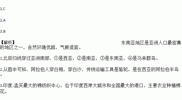 3.abcd四个城市中属所在国最大棉纺织工业中心的是( )