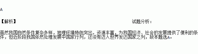 A. 自然条件复杂多样,地理环境特色突出,资源丰富,中国已迈入世界发达国家之列