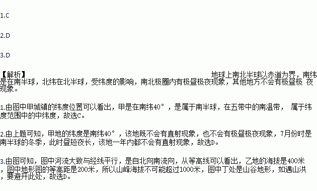 1.关于甲城镇地理位置的说法,正确的是( )